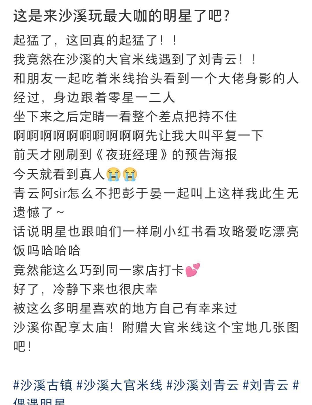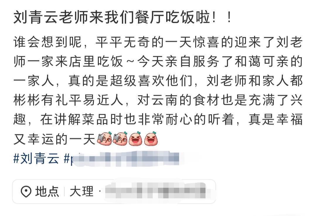 在沙溪的一家餐馆,另一位网友抬头便看见刘青云与两人同行。