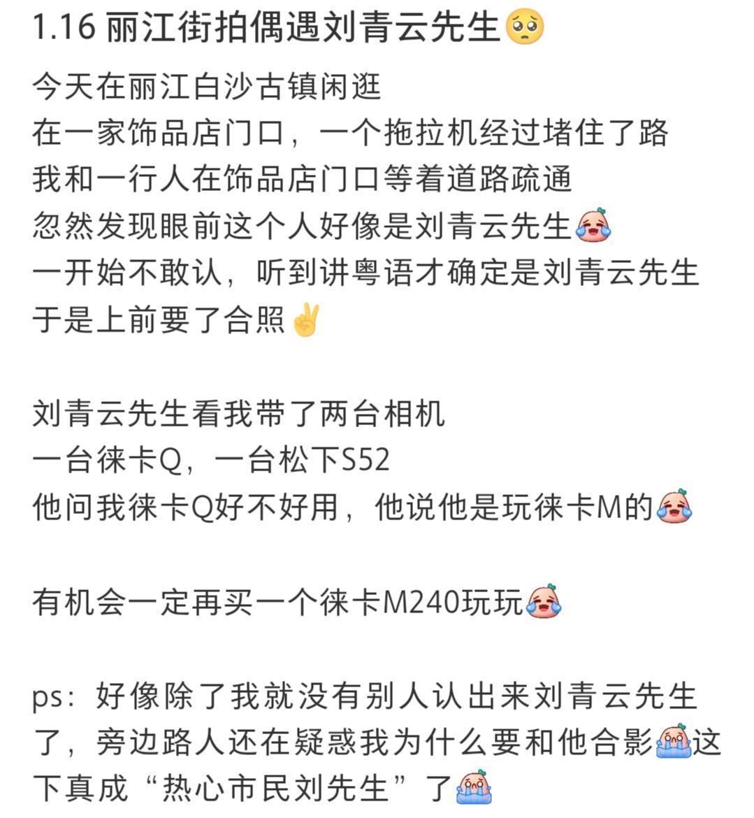 近日,刘青云与妻子郭蔼明在云南旅行时被多位网友偶遇。这对结婚超过二十年、被视为香港娱乐圈模范的夫妻,以一如既往的低调与随和,留下了几幅平淡却温馨的生活剪影。丽江街头,一位网友起初未敢确认,直至听见粤语交谈才上前请求合影。他毫无架子,还与网友聊起了相机。
